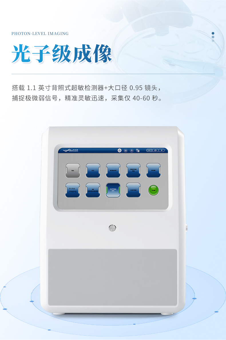 采用獨(dú)特的光子級成像技術(shù)、超低降噪處理技術(shù),結(jié)合大耙面背照式超敏檢測器以及大通 光透鏡,使得極微弱信號捕捉變的更容易。靈敏度遠(yuǎn)超同類產(chǎn)品,成像效果更好,采集速 度提升 2-3 倍(原需 2 分鐘,現(xiàn)僅 40-60 秒),避免科研成果錯失。我司研發(fā)的新一代 超敏化學(xué)發(fā)光成像系統(tǒng)完全可替代進(jìn)口同類產(chǎn)品。